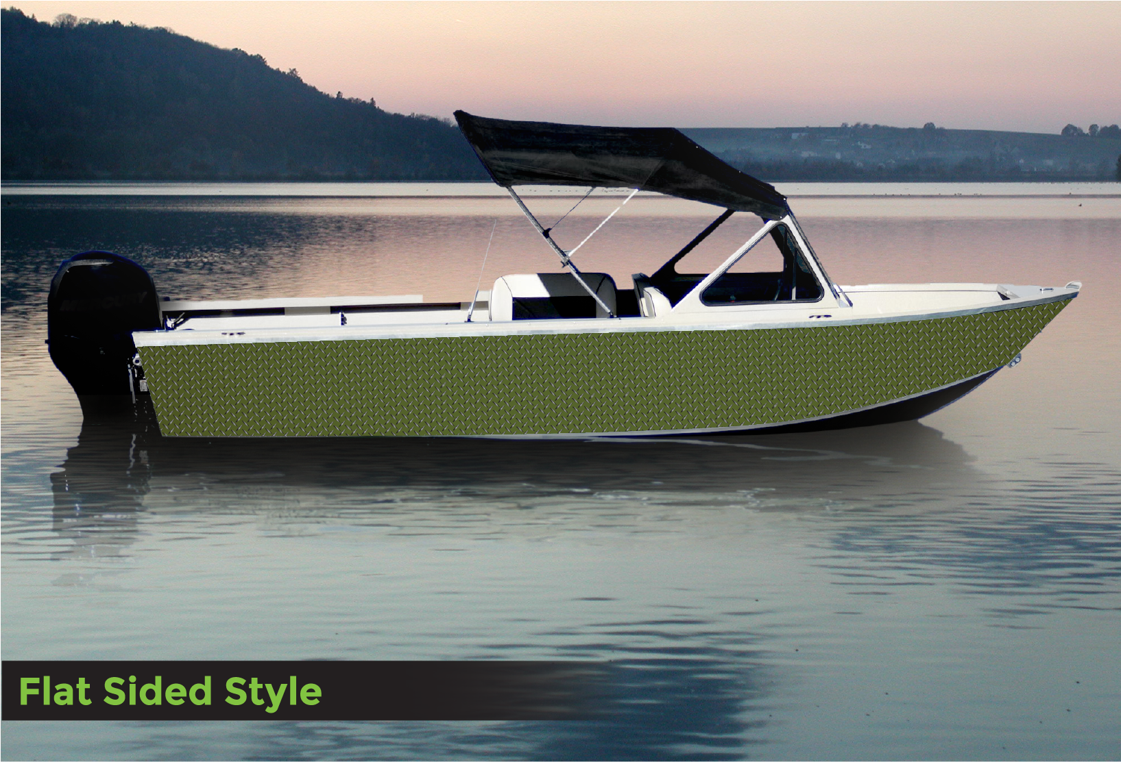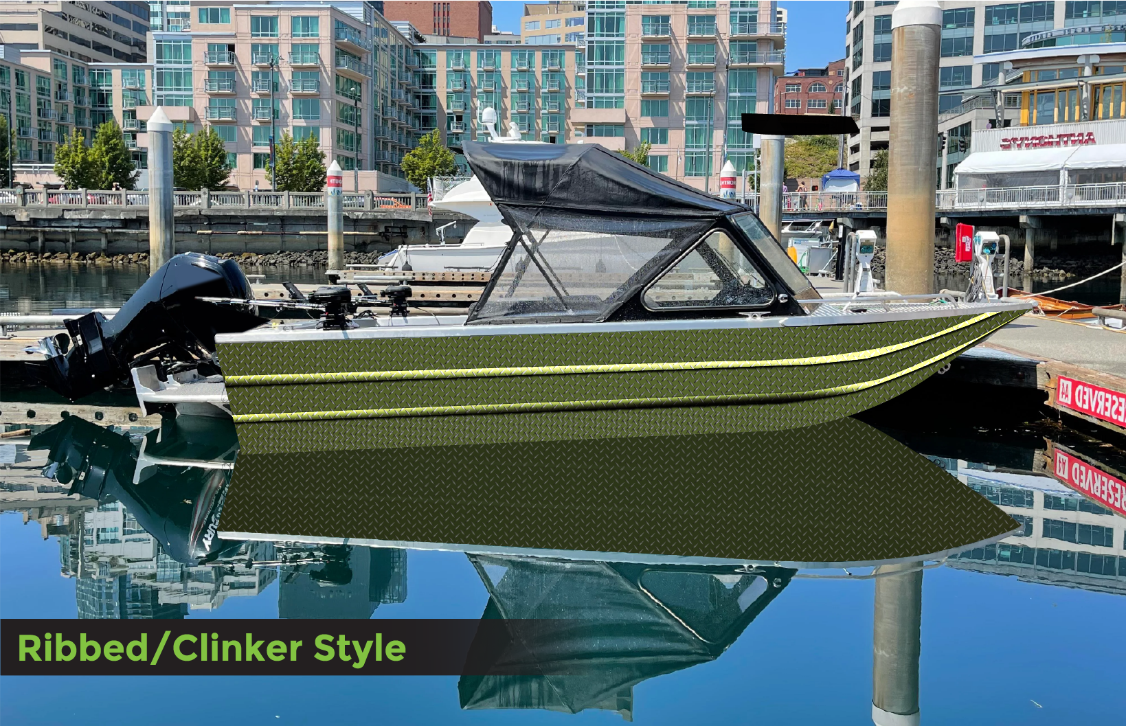 Price will vary between flat side vs ribs/ridges/clinker style. Please review our Hull Style page to help determine which style your boat is. Flat side wraps wont contour into recessed areas without air bubbles if installed on any surface that is NOT flat.