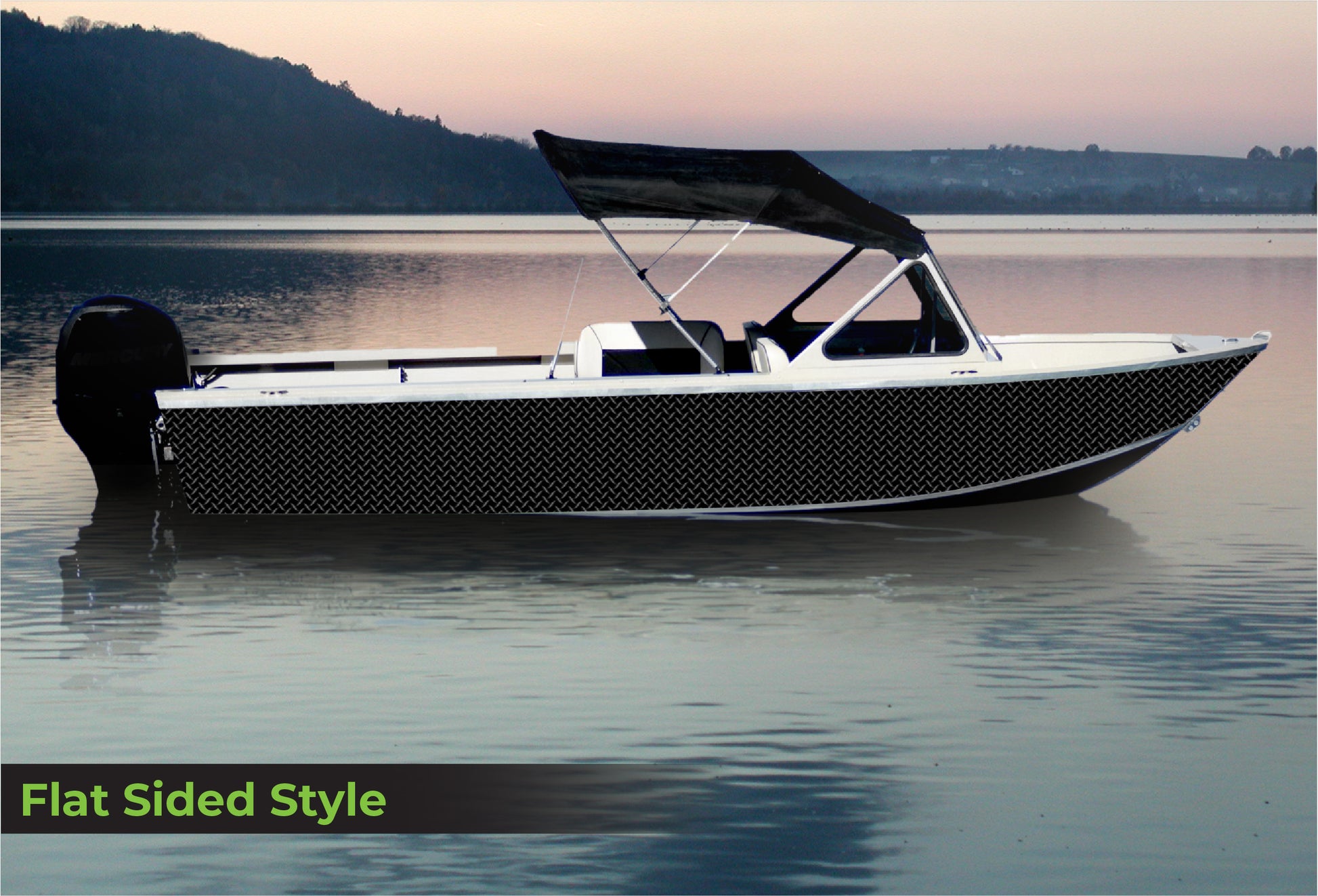 Price will vary between flat side vs ribs/ridges/clinker style. Please review our Hull Style page to help determine which style your boat is. Flat side wraps wont contour into recessed areas without air bubbles if installed on any surface that is NOT flat.