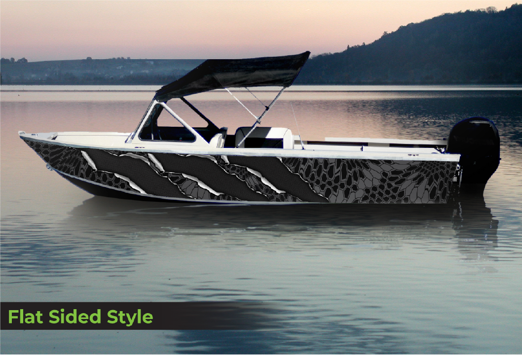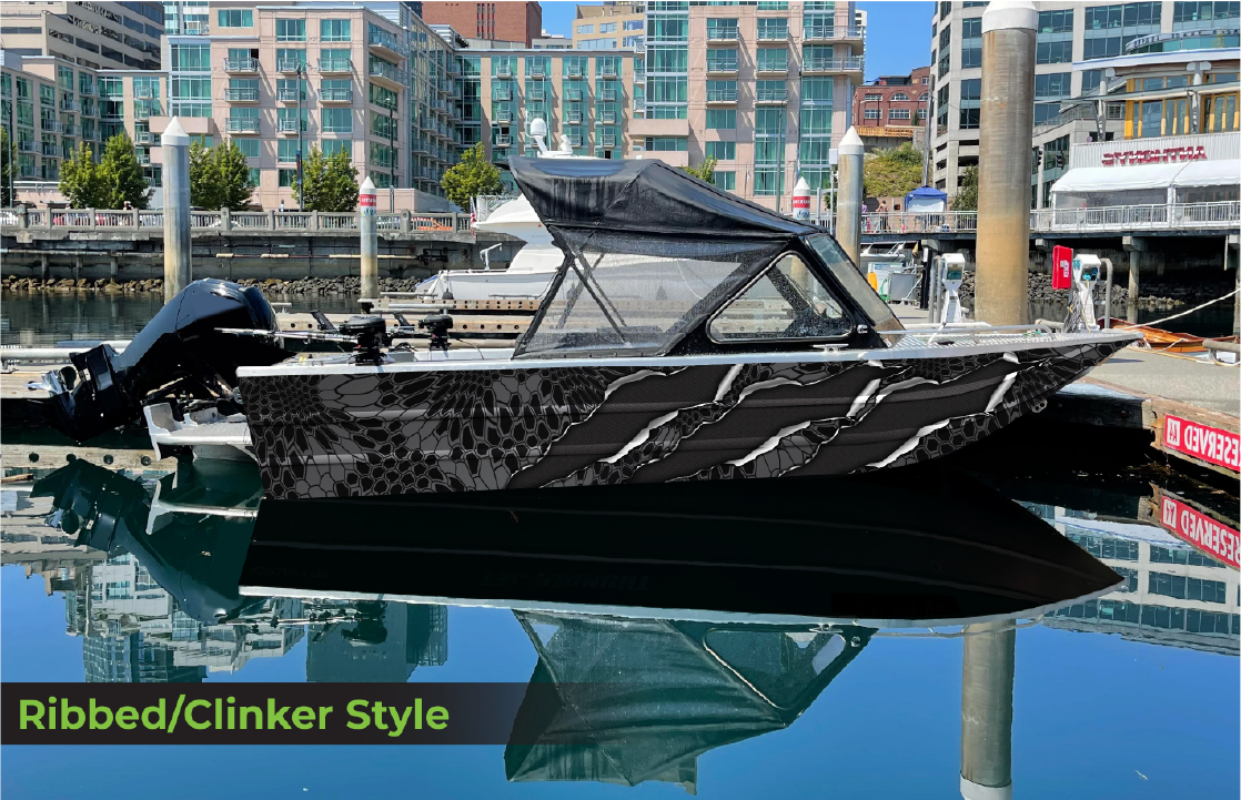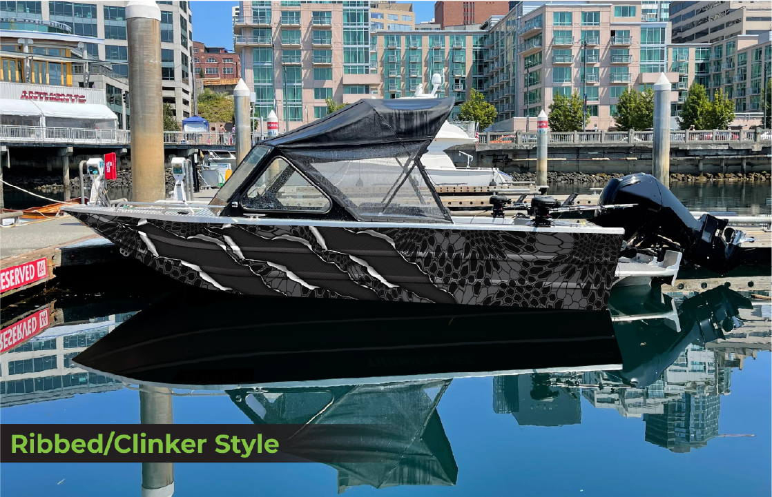 Price will vary between flat side vs ribs/ridges/clinker style. Please review our Hull Style page to help determine which style your boat is. Flat side wraps wont contour into recessed areas without air bubbles if installed on any surface that is NOT flat.