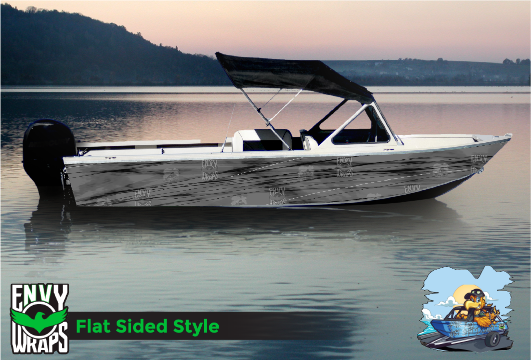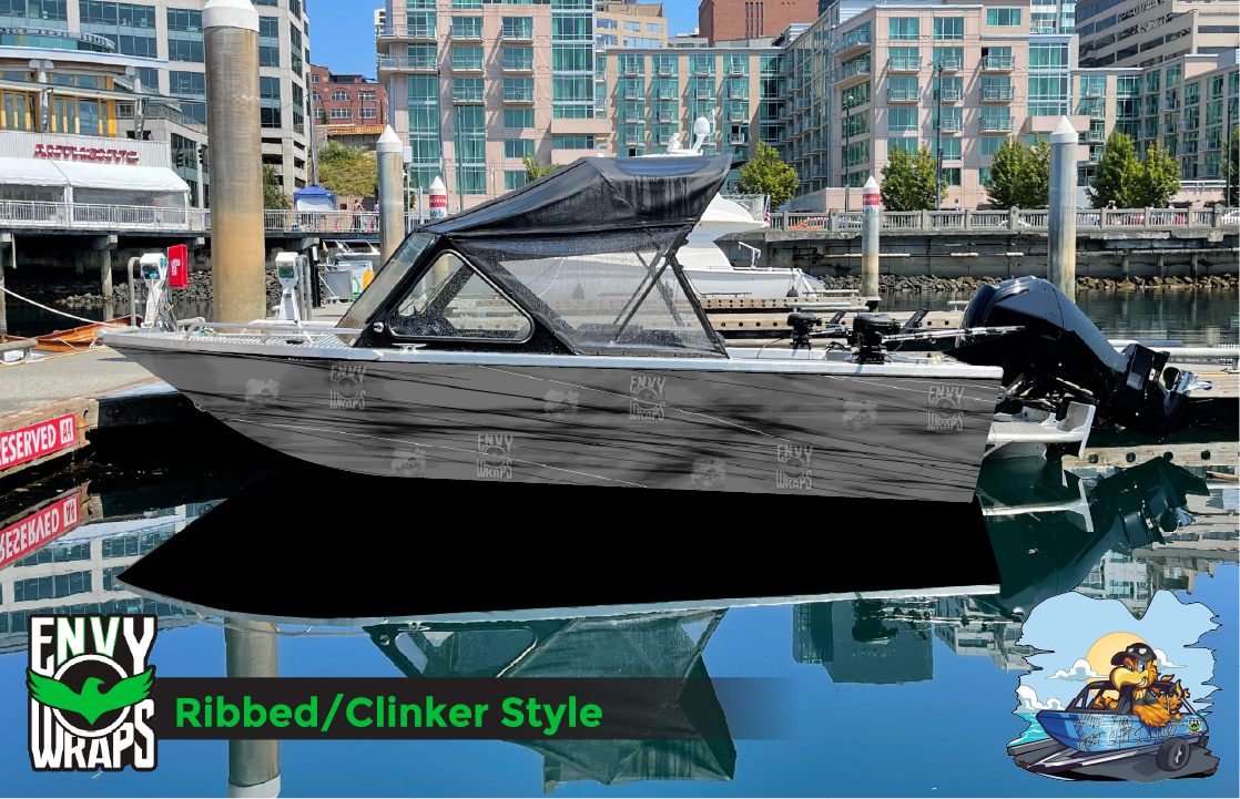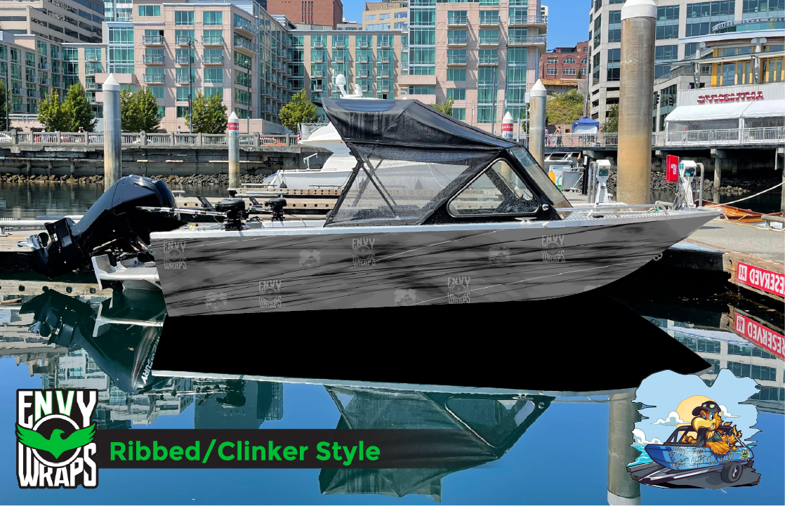 Price will vary between flat side vs ribs/ridges/clinker style. Please review our Hull Style page to help determine which style your boat is. Flat side wraps wont contour into recessed areas without air bubbles if installed on any surface that is NOT flat.