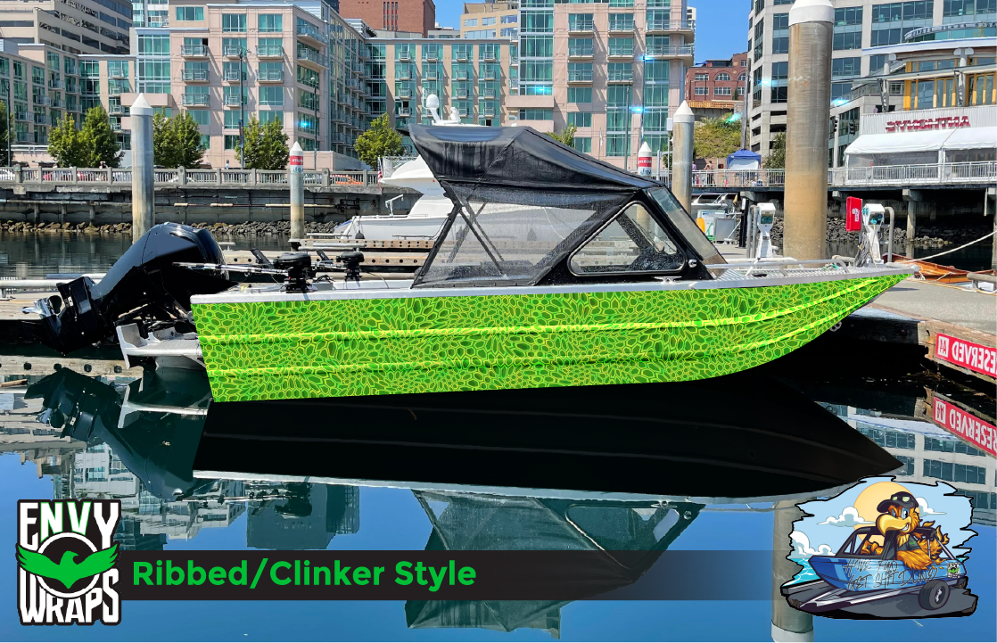 Price will vary between flat side vs ribs/ridges/clinker style. Please review our Hull Style page to help determine which style your boat is. Flat side wraps wont contour into recessed areas without air bubbles if installed on any surface that is NOT flat.