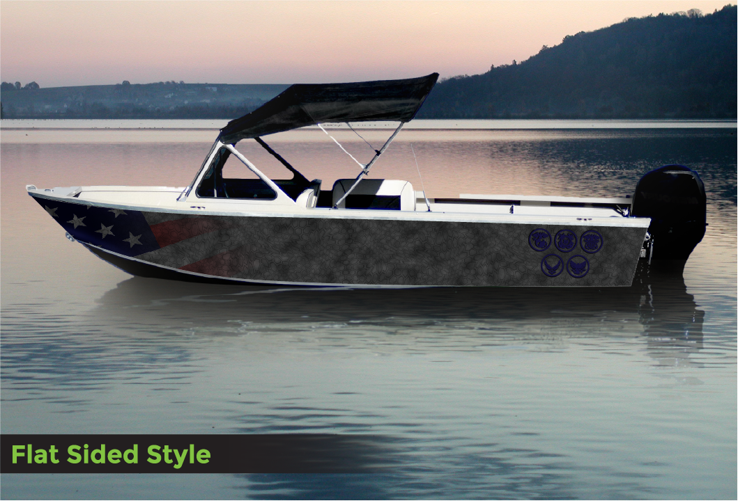 Price will vary between flat side vs ribs/ridges/clinker style. Please review our Hull Style page to help determine which style your boat is. Flat side wraps wont contour into recessed areas without air bubbles if installed on any surface that is NOT flat.