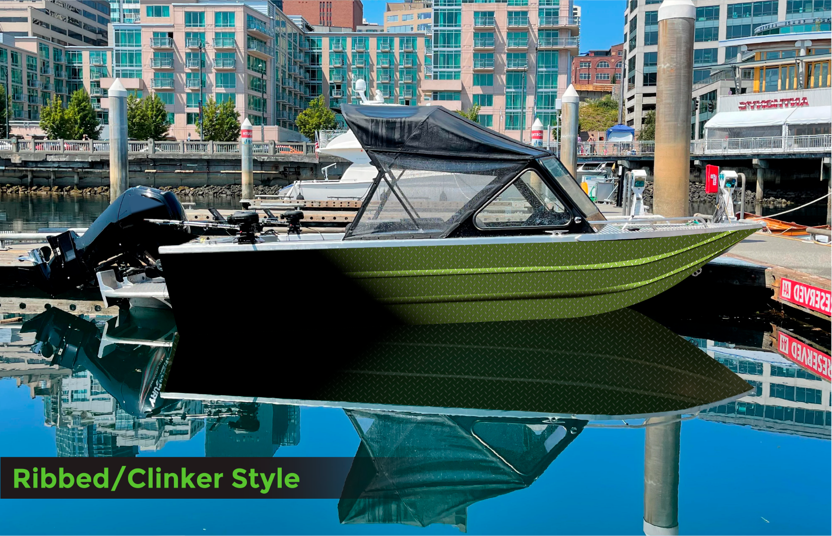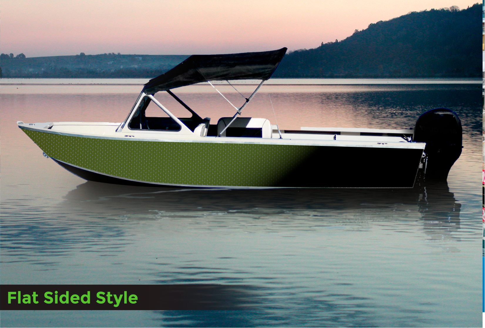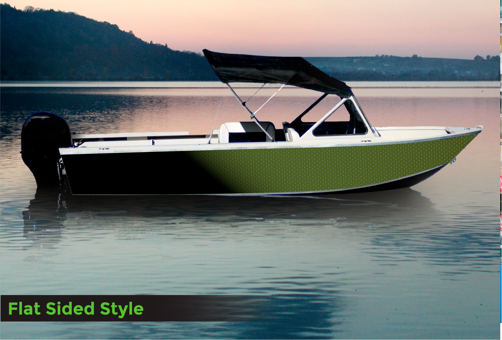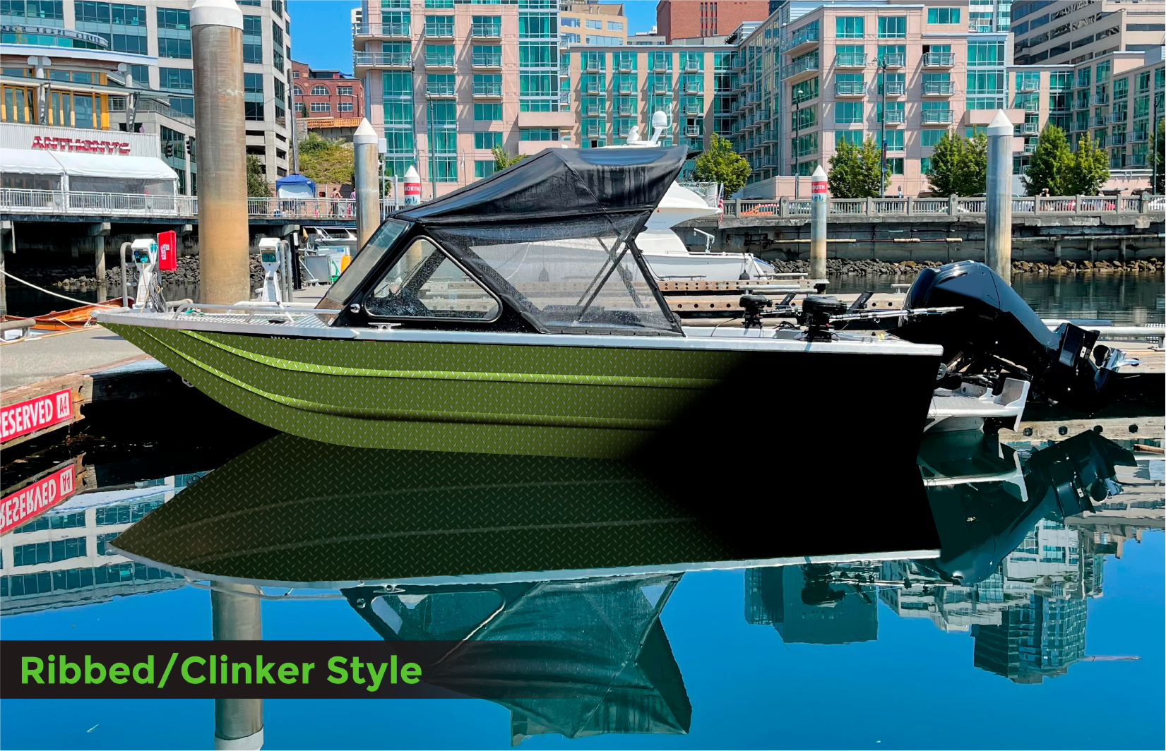 Price will vary between flat side vs ribs/ridges/clinker style. Please review our Hull Style page to help determine which style your boat is. Flat side wraps wont contour into recessed areas without air bubbles if installed on any surface that is NOT flat.