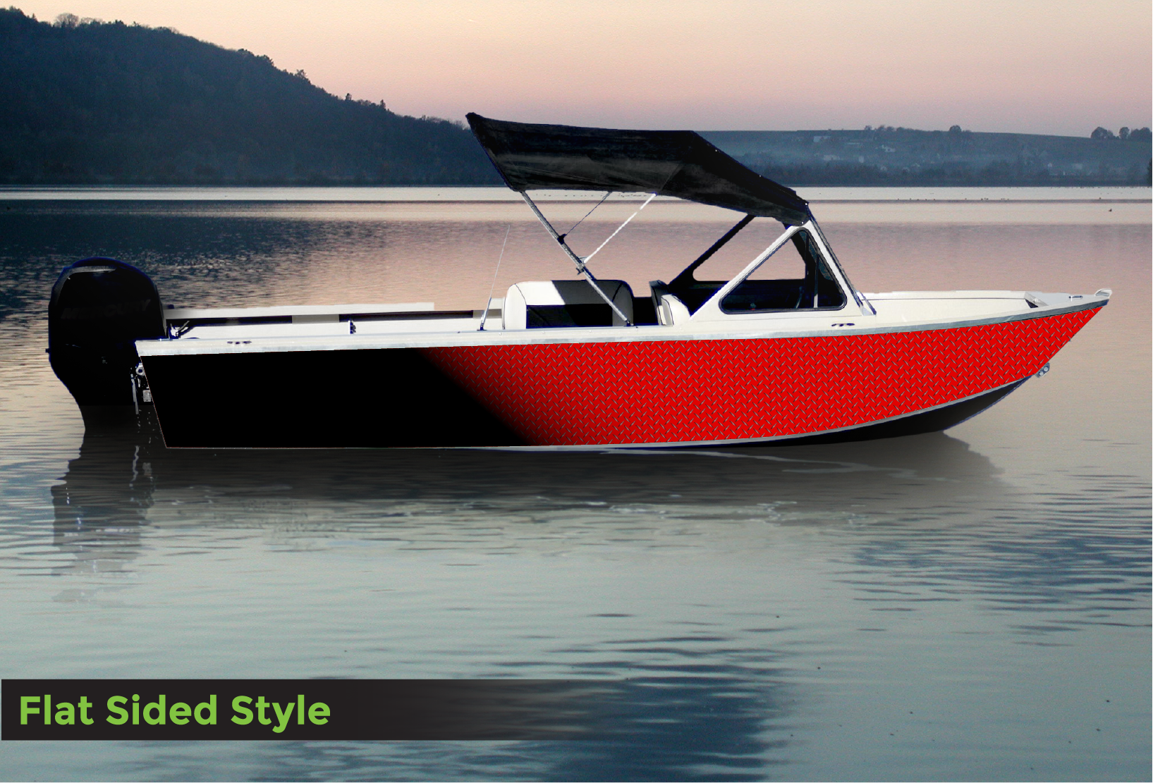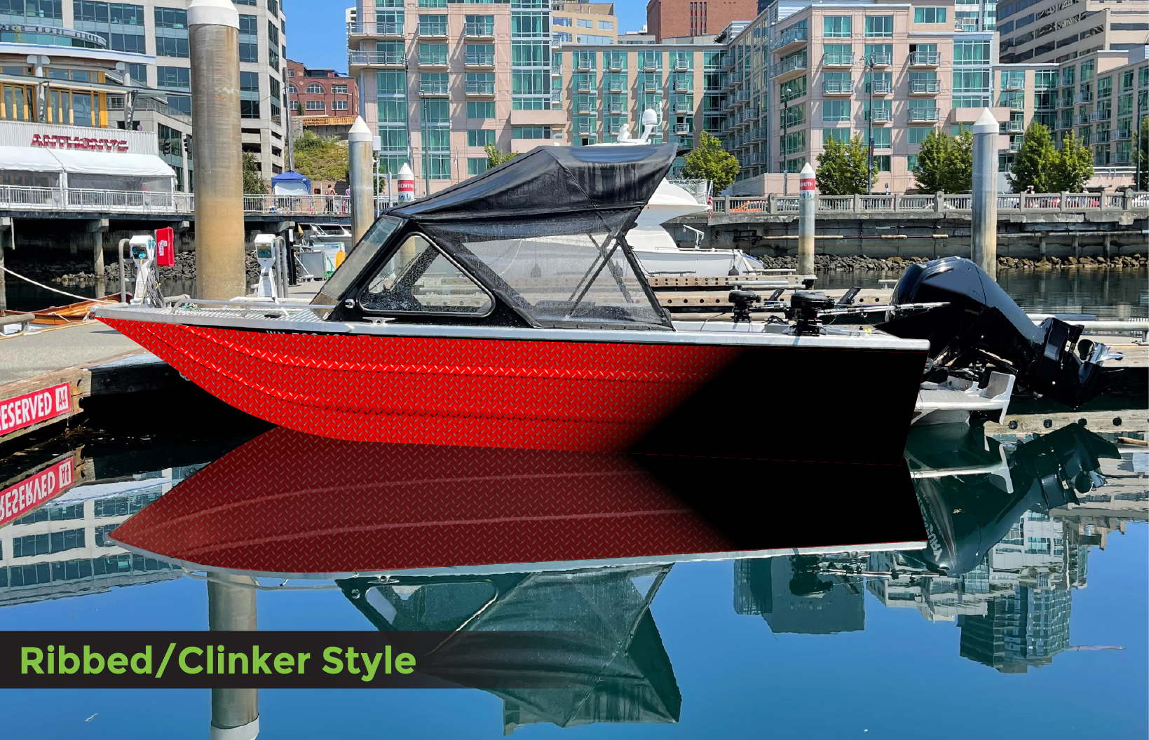 Price will vary between flat side vs ribs/ridges/clinker style. Please review our Hull Style page to help determine which style your boat is. Flat side wraps wont contour into recessed areas without air bubbles if installed on any surface that is NOT flat.