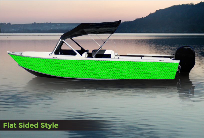 Price will vary between flat side vs ribs/ridges/clinker style. Please review our Hull Style page to help determine which style your boat is. Flat side wraps wont contour into recessed areas without air bubbles if installed on any surface that is NOT flat.