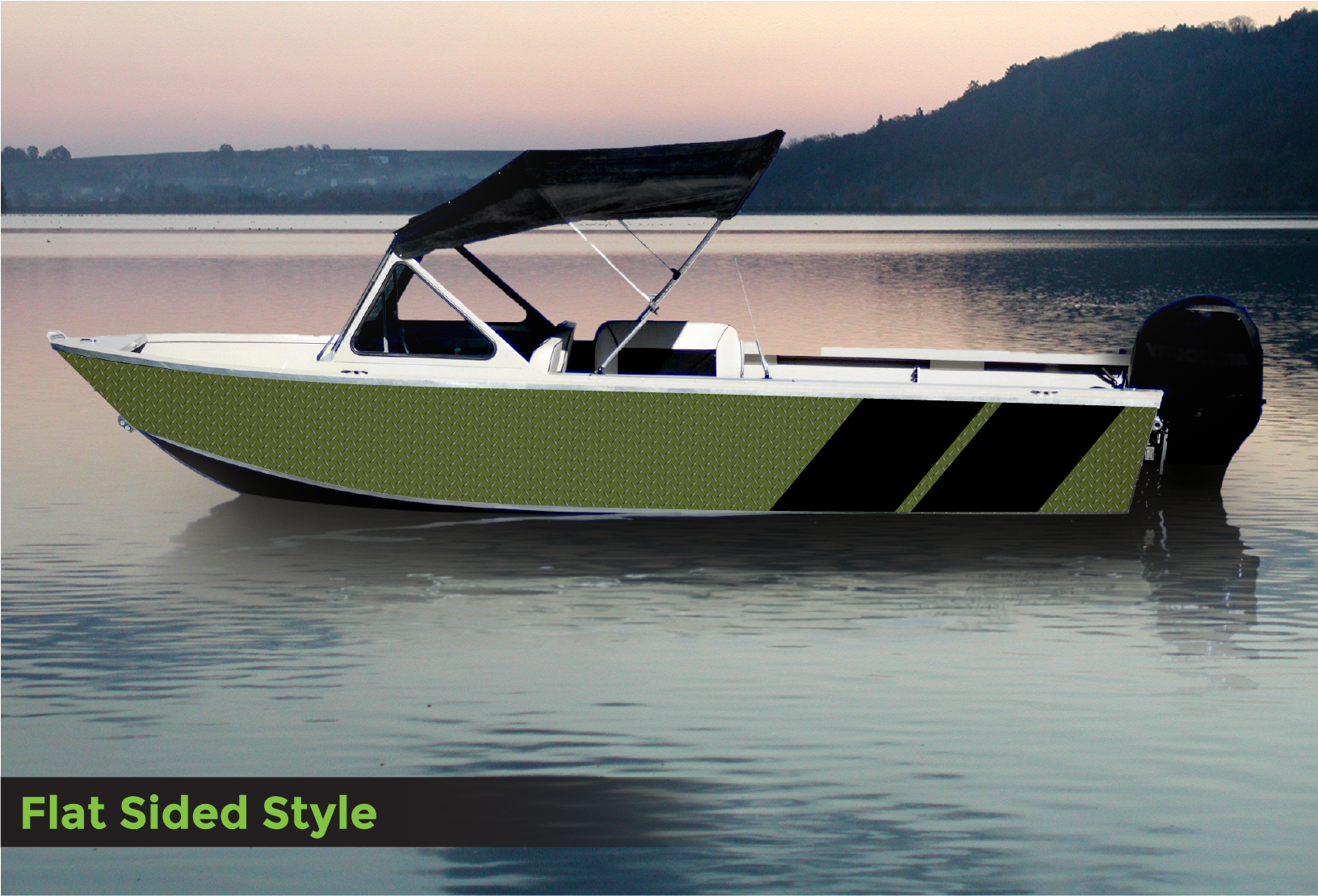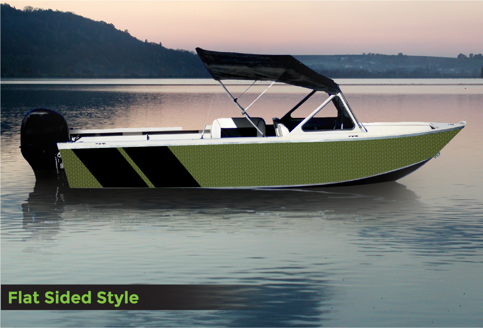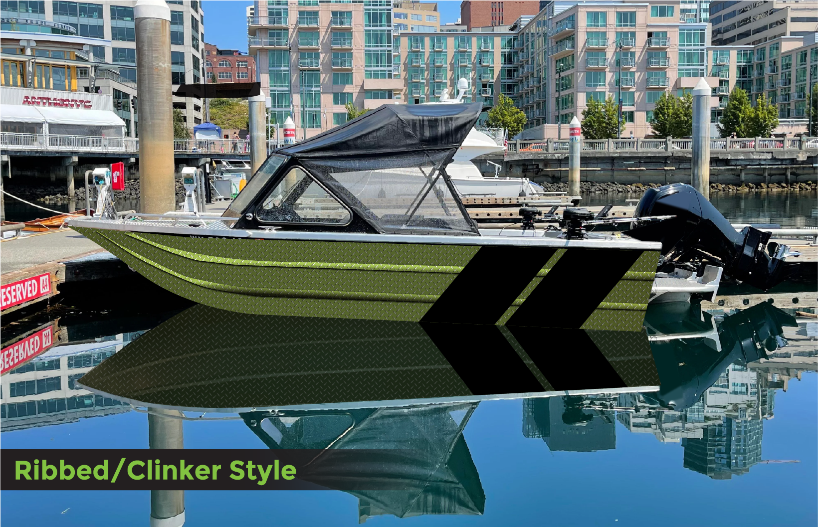 Price will vary between flat side vs ribs/ridges/clinker style. Please review our Hull Style page to help determine which style your boat is. Flat side wraps wont contour into recessed areas without air bubbles if installed on any surface that is NOT flat.