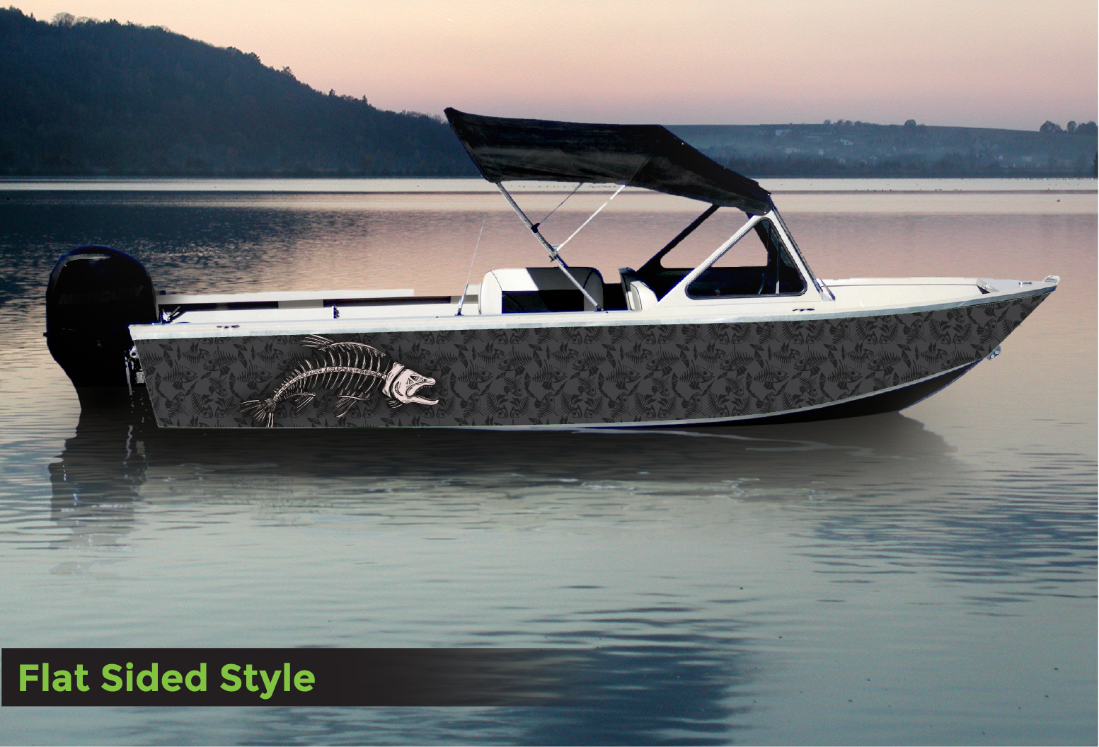 Price will vary between flat side vs ribs/ridges/clinker style. Please review our Hull Style page to help determine which style your boat is. Flat side wraps wont contour into recessed areas without air bubbles if installed on any surface that is NOT flat.