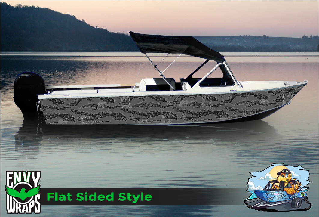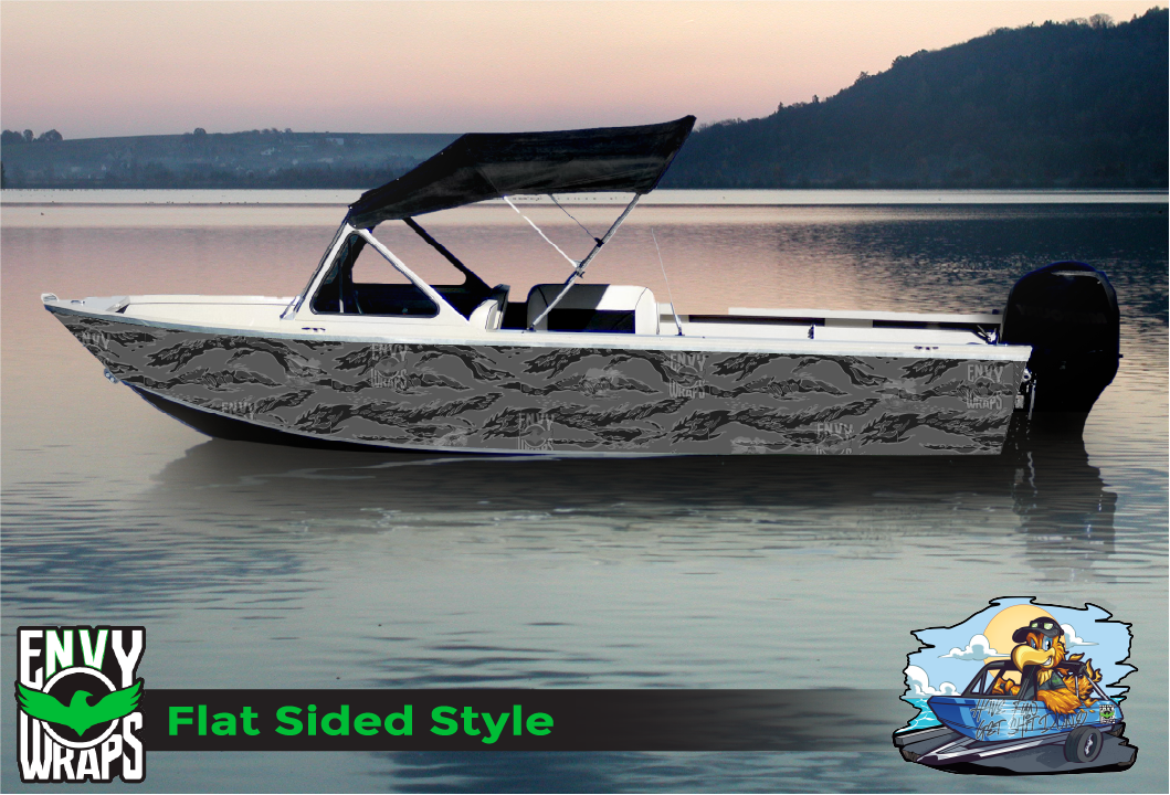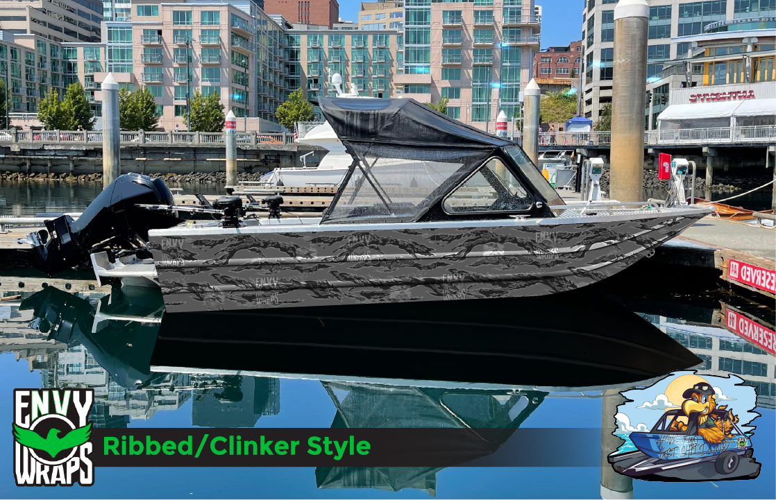 Price will vary between flat side vs ribs/ridges/clinker style. Please review our Hull Style page to help determine which style your boat is. Flat side wraps wont contour into recessed areas without air bubbles if installed on any surface that is NOT flat.