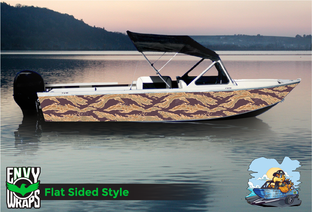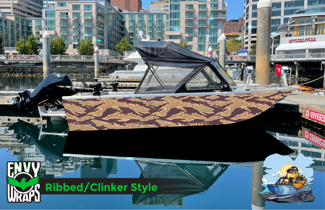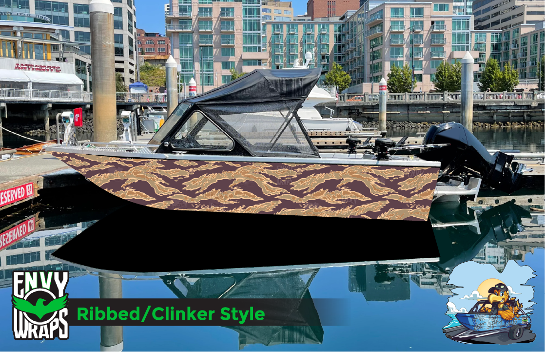 Price will vary between flat side vs ribs/ridges/clinker style. Please review our Hull Style page to help determine which style your boat is. Flat side wraps wont contour into recessed areas without air bubbles if installed on any surface that is NOT flat.