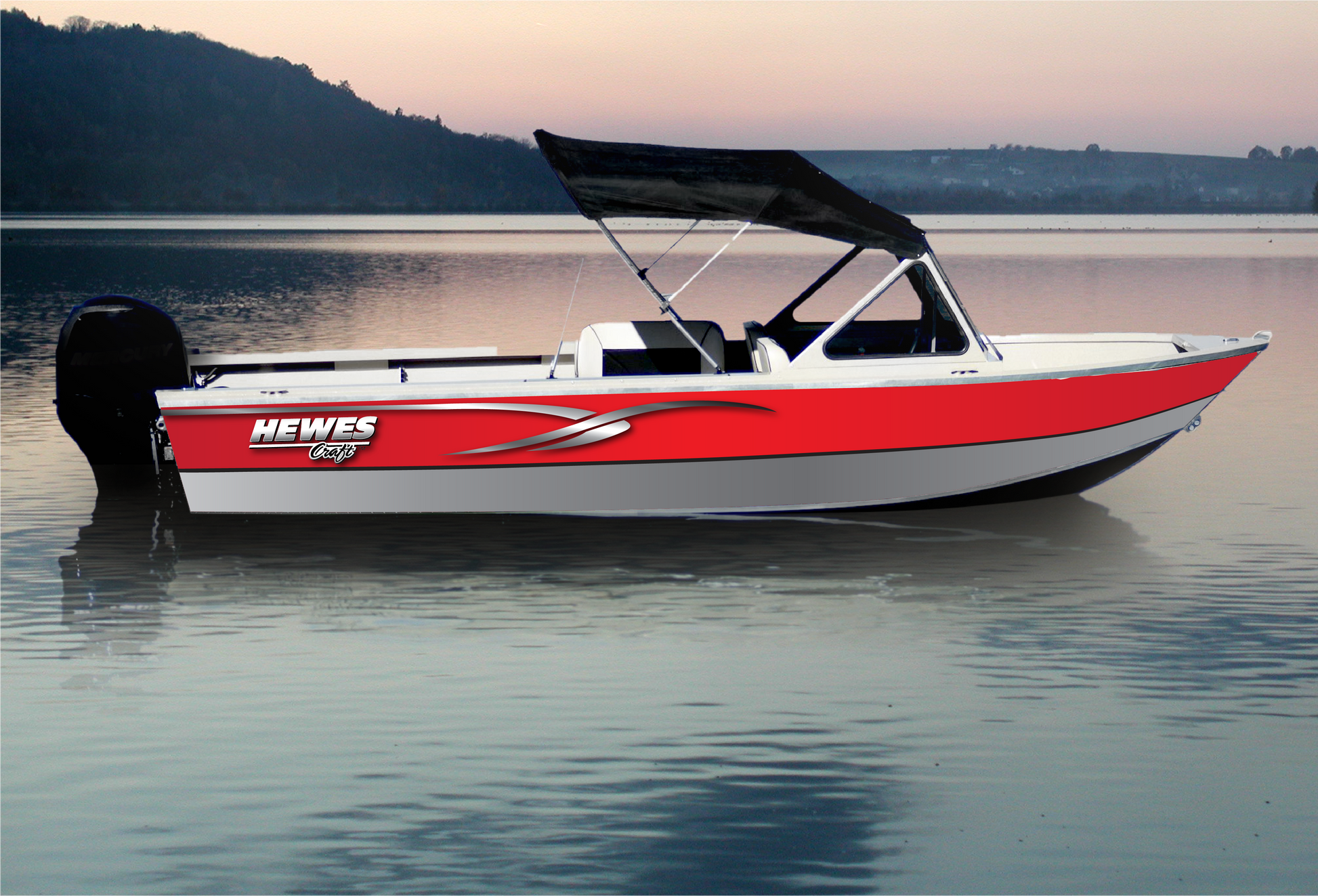 Design position will vary from from the photo based on size and shape of your boat. We will fit the design best to fit the measurements you provide.