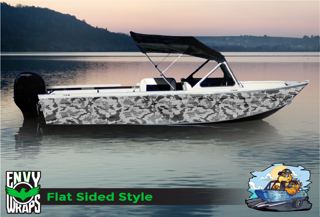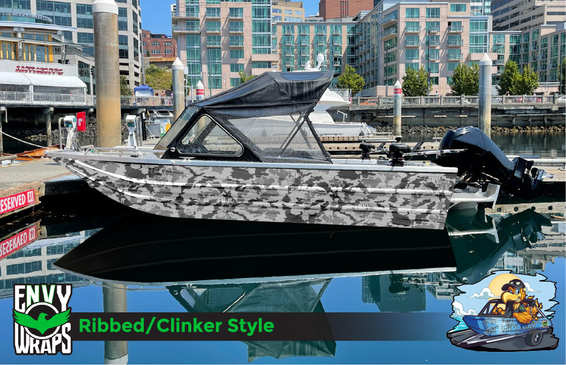 Price will vary between flat side vs ribs/ridges/clinker style. Please review our Hull Style page to help determine which style your boat is. Flat side wraps wont contour into recessed areas without air bubbles if installed on any surface that is NOT flat.