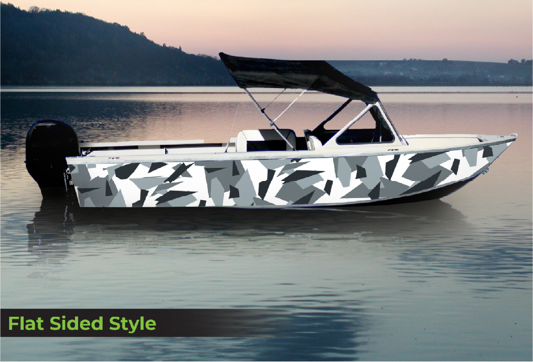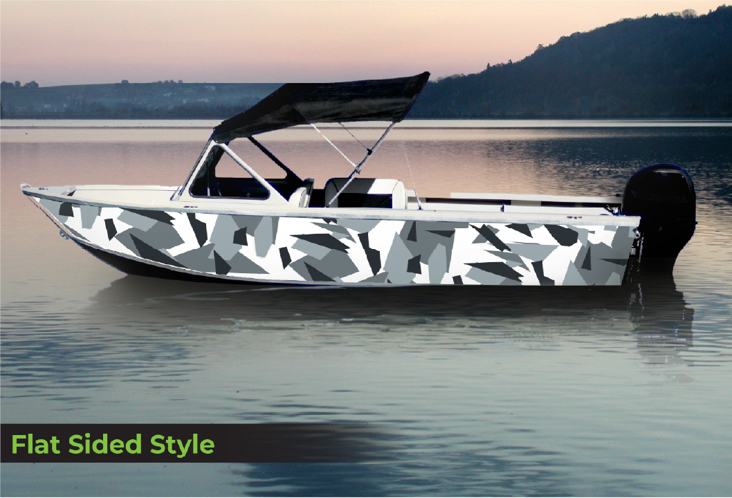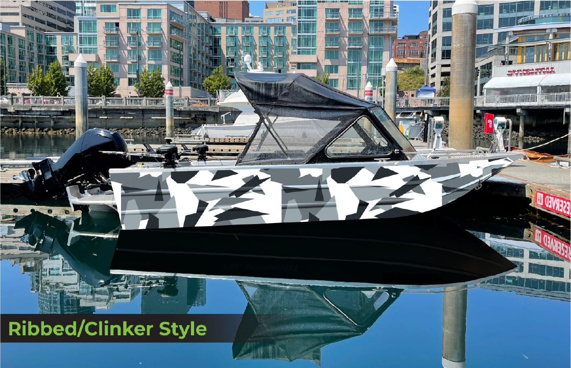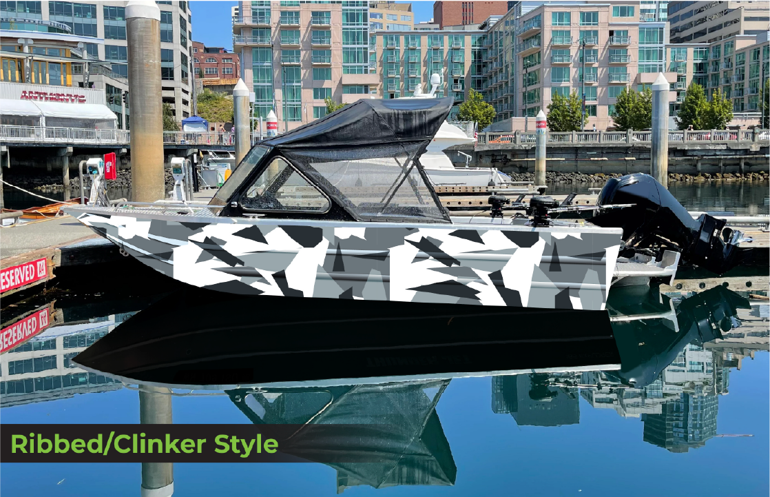 Price will vary between flat side vs ribs/ridges/clinker style. Please review our Hull Style page to help determine which style your boat is. Flat side wraps wont contour into recessed areas without air bubbles if installed on any surface that is NOT flat.