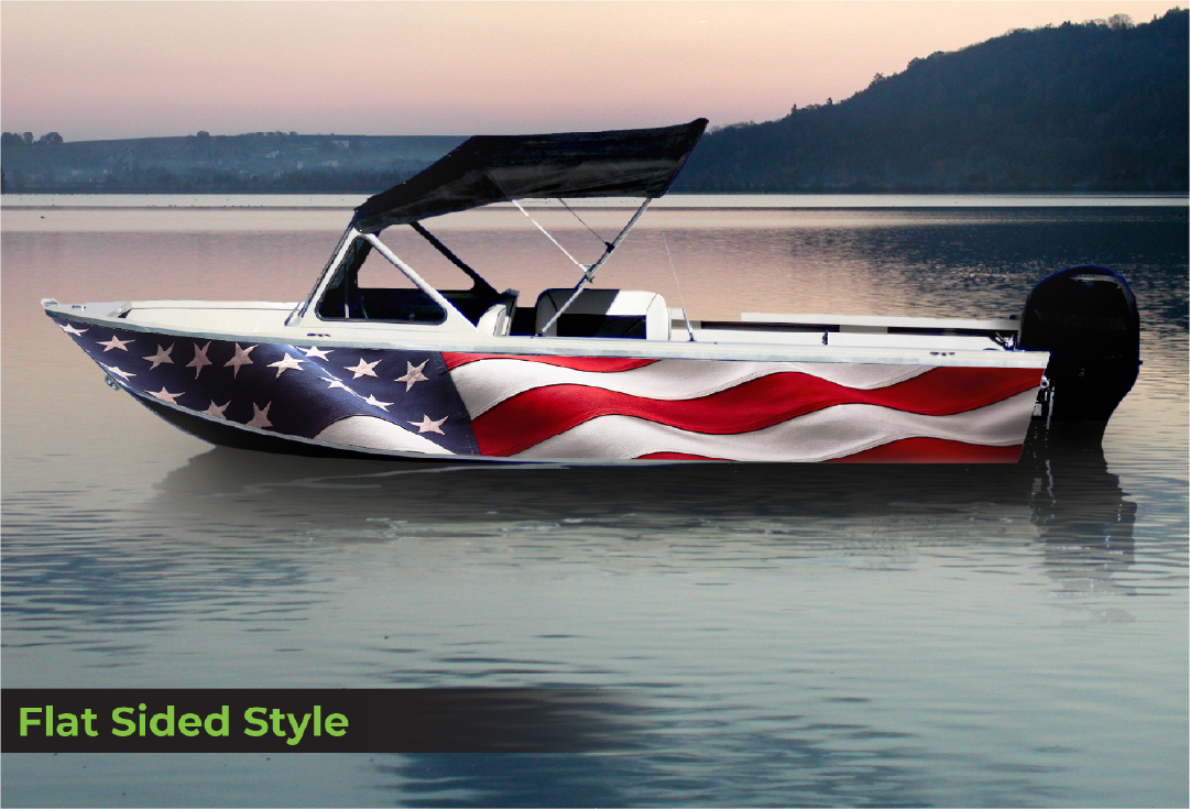 Price will vary between flat side vs ribs/ridges/clinker style. Please review our Hull Style page to help determine which style your boat is. Flat side wraps wont contour into recessed areas without air bubbles if installed on any surface that is NOT flat.