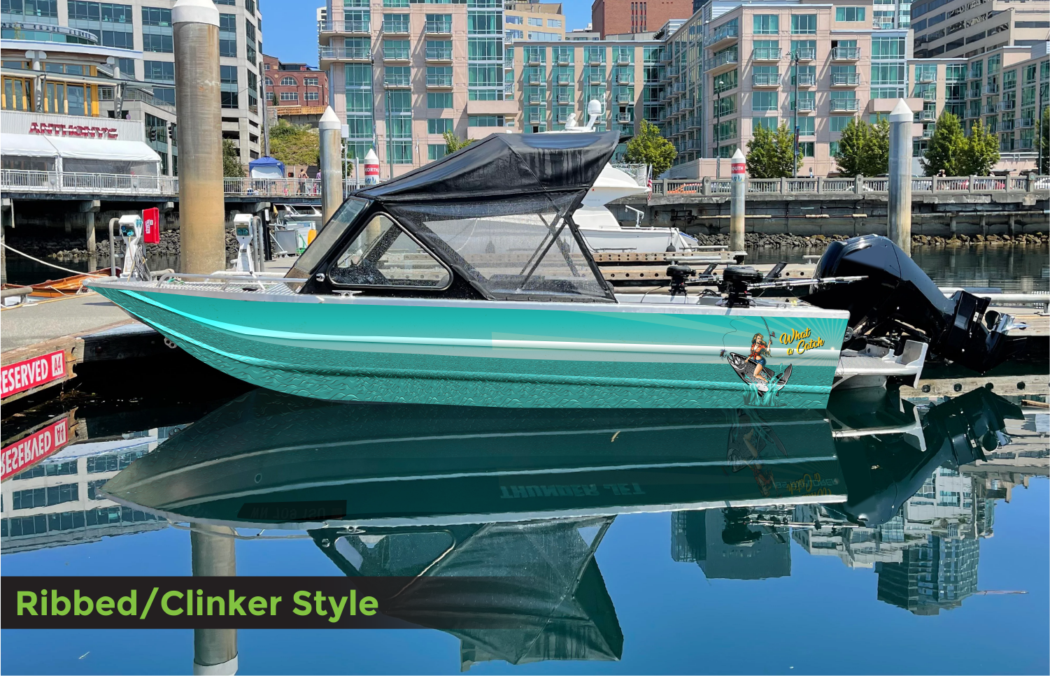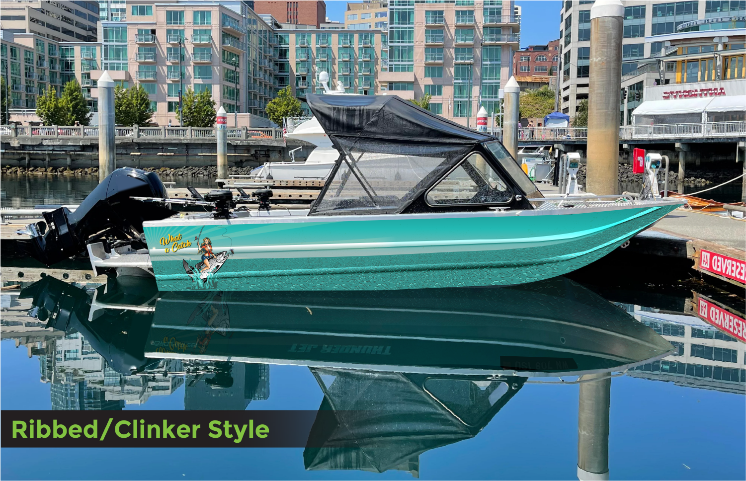 Price will vary between flat side vs ribs/ridges/clinker style. Please review our Hull Style page to help determine which style your boat is. Flat side wraps wont contour into recessed areas without air bubbles if installed on any surface that is NOT flat.