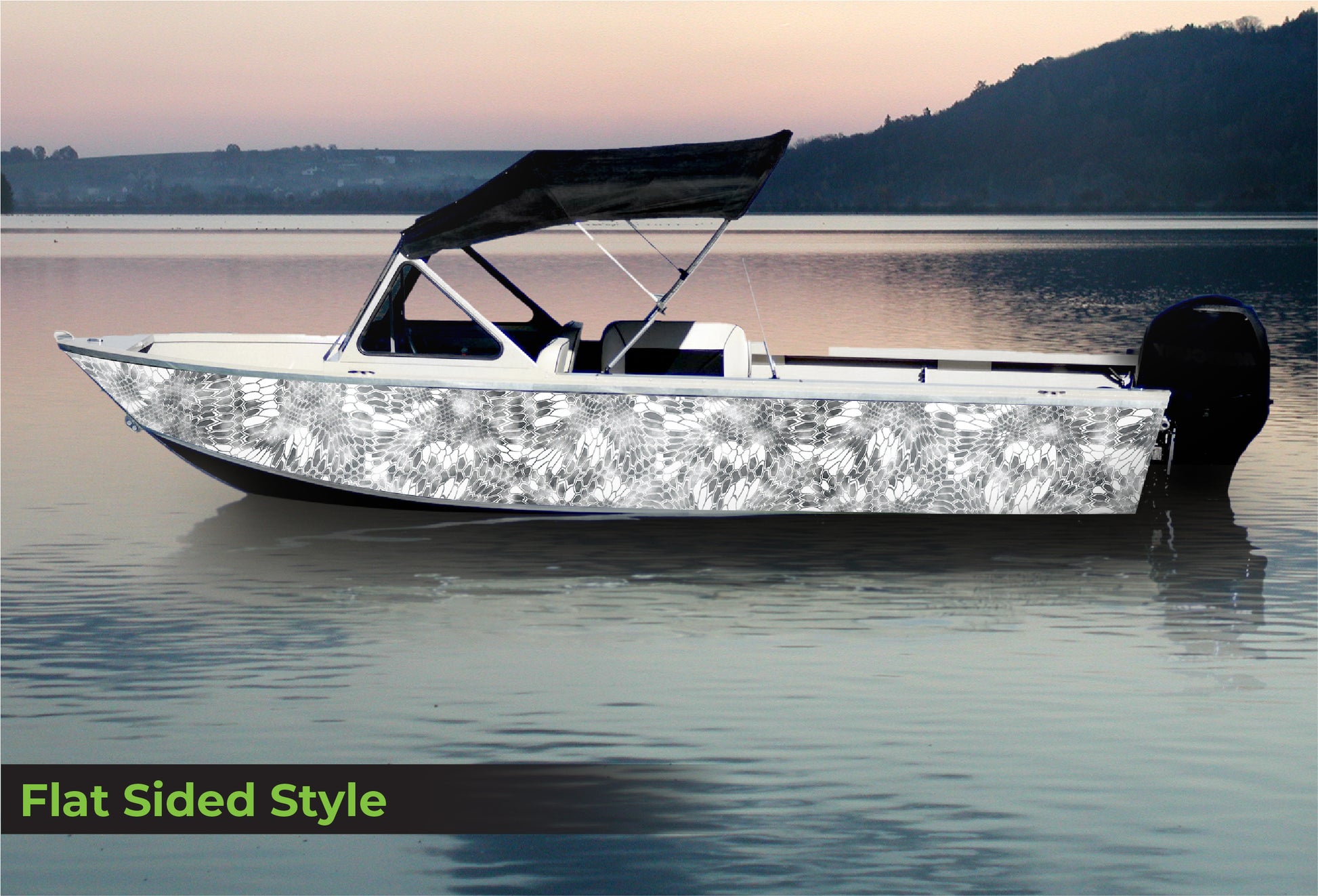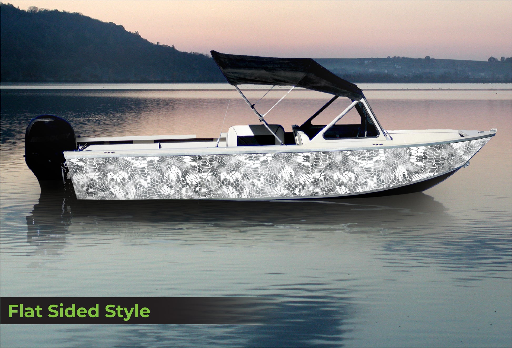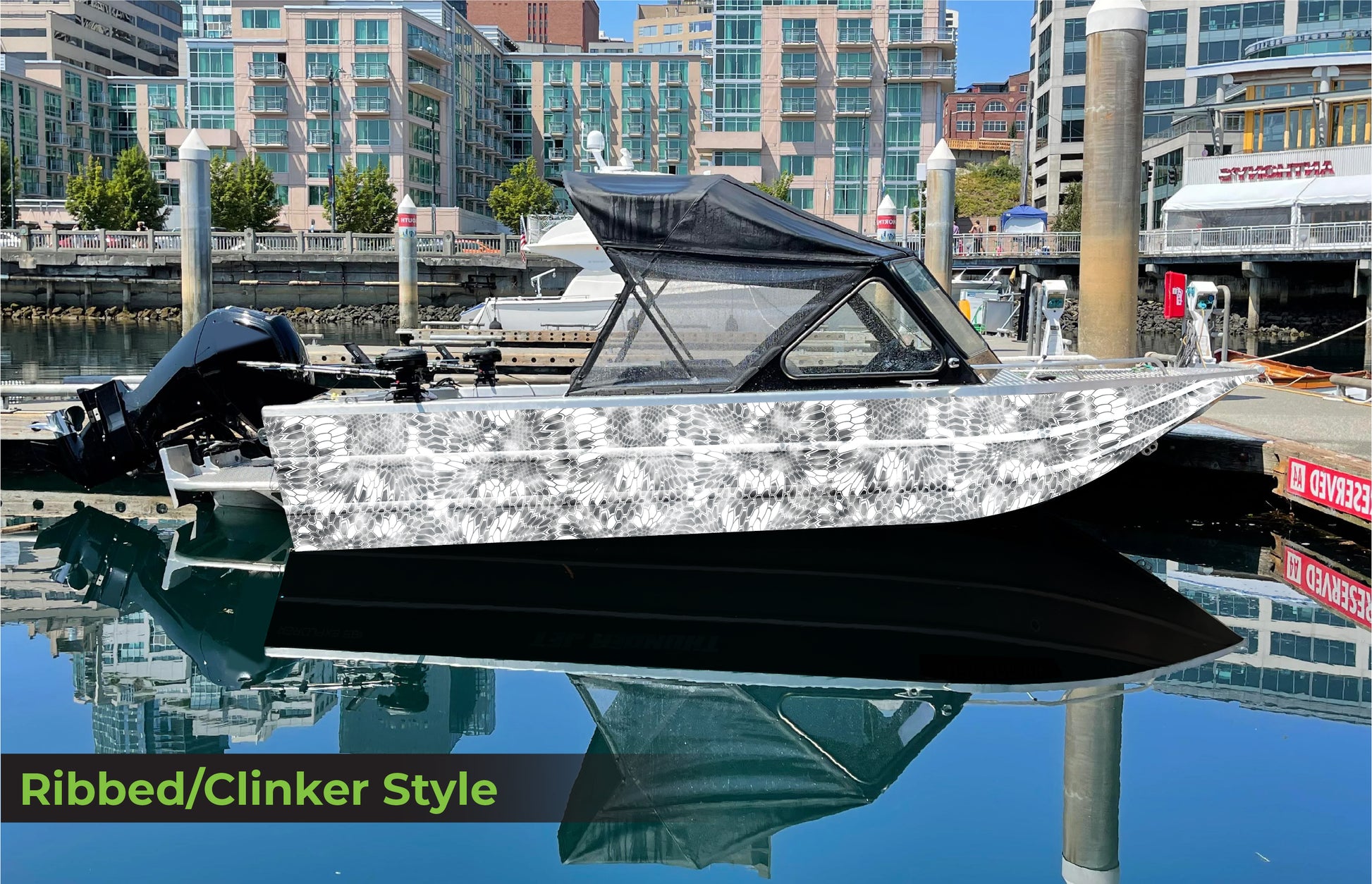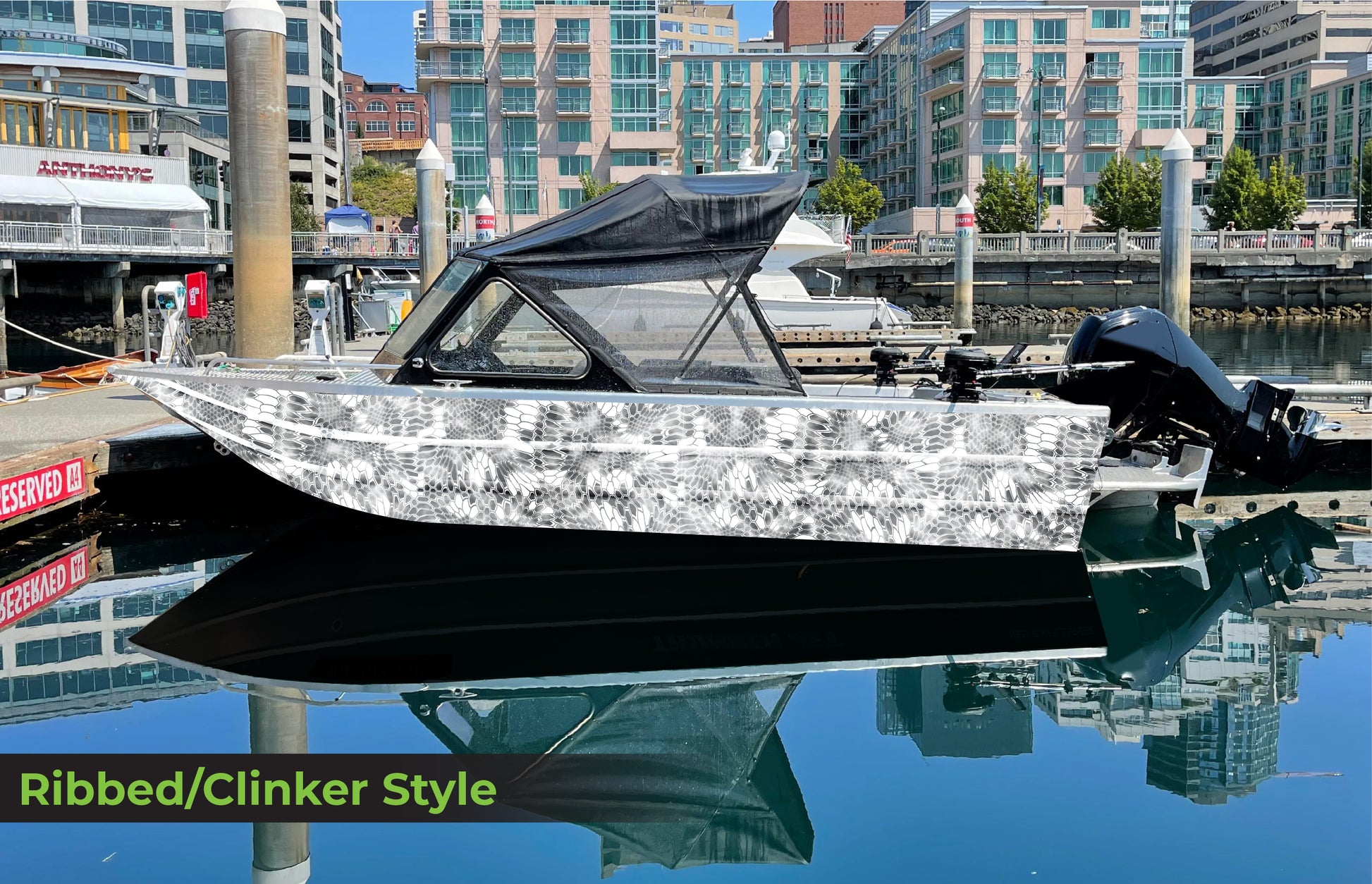 Price will vary between flat side vs ribs/ridges/clinker style. Please review our Hull Style page to help determine which style your boat is. Flat side wraps wont contour into recessed areas without air bubbles if installed on any surface that is NOT flat.